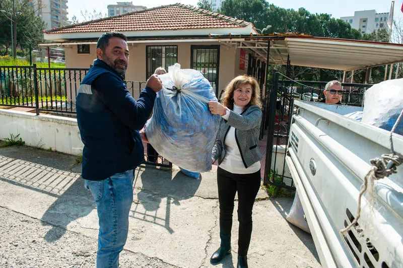 Karşıyaka Belediyesi İklim Değişikliği ve Sıfır Atık Müdürlüğü bünyesinde yürütülen “Mavi Kapak” kampanyasına Aliağa’nın Uzunhasanlar köyünden anlamlı bir destek geldi. Oğlu aracılığıyla kampanyadan haberdar olan Murat İmre, uzun zamandır biriktirdiği toplam 200 kilogramlık 9 çuval plastik kapağı Karşıyaka’ya gönderdi. Yine bir hayırseverin katkılarıyla taşınan kapak dolu çuvallar, Mustafa Kemal Mahalle Muhtarı Hanımşah Han’a ulaştırıldı ve belediye ekipleri tarafından teslim alındı. Aliağa’dan Karşıyaka’ya uzanan bu destek, kampanya için sergilenen en güzel dayanışma örneklerinden biri oldu.