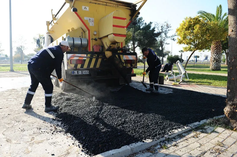 gerçekleştiren Karşıyaka Belediyesi, yol bakım ve onarım çalışmalarını Ekim