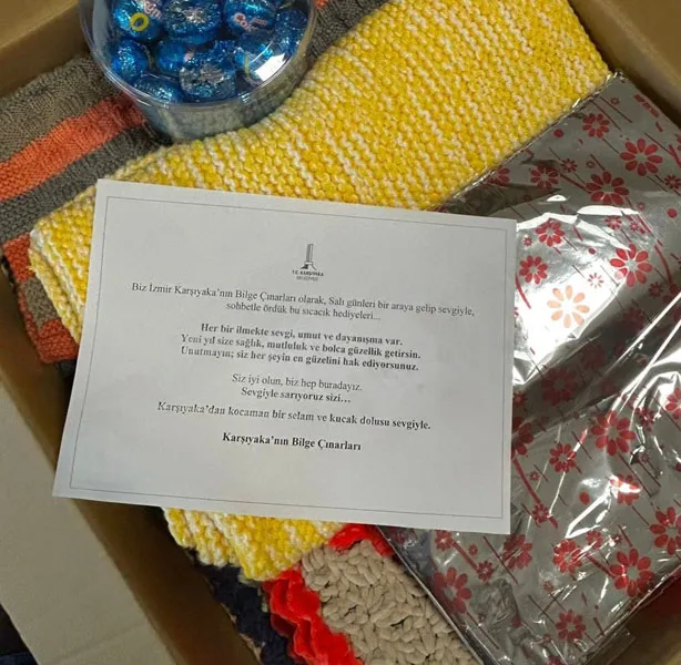 Karşıyaka Belediyesi Bilge Çınarlar Sağlıklı Yaş Alma Merkezi örgü kursu üyeleri, kalpleri ısıtan bir sosyal sorumluluk projesine daha imza attı. Çınarlar, kurs kapsamında bir yıl boyunca büyük bir özenle hazırladıkları el emeği ürünleri Batman ve Trabzon'daki okullara ulaştırarak dayanışmaya güç kattı. Belediye Başkanı Yıldız Ünsal, “İyi yürekleri ve duyarlılıkları için kıymetli büyüklerimize teşekkürlerimi sunuyorum” dedi.