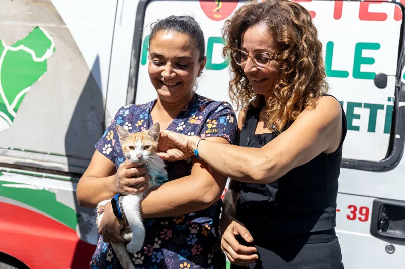 Karşıyaka’da bir aracın çarpması sonucu ağır yaralanan sokak kedisi, Karşıyaka Belediyesi Veteriner İşleri Müdürlüğü’nün hızlı müdahalesi ile hayata döndürüldü. Kediyi bulan ve ekiplere haber veren Fikri Altay Mahalle Muhtarı Kezban Çaydam, bir bacağı ampute edilen can dostu sahiplenerek ‘Şanslı’ adını verdi.