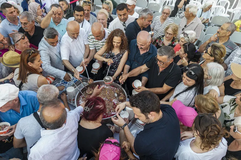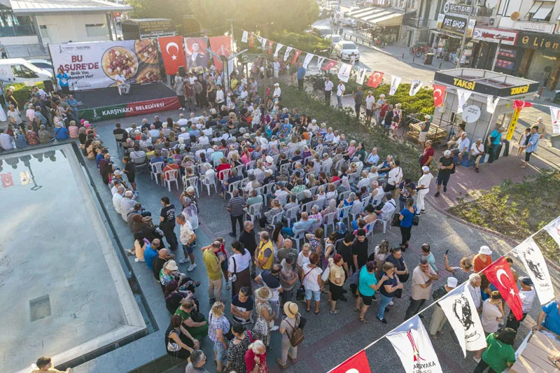 Karşıyaka Belediyesi’nin geleneksel hale getirdiği Aşure Günü etkinliği, bu yıl da büyük coşku ve yoğun katılımla gerçekleşti. Birlik ve beraberlik dilekleriyle karılan aşurenin bereketi, yaklaşık üç bin vatandaşla paylaşıldı. Belediye Başkanı Yıldız Ünsal “Bu güzel günü anlamlandıran tüm katılımcılara ve emek veren derneklerimize teşekkür ediyorum” dedi.