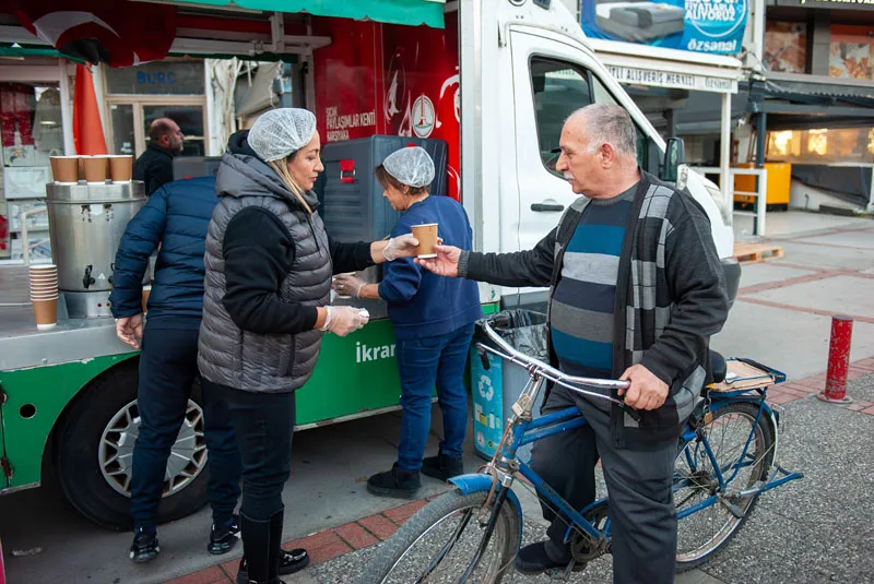 Sosyal belediyecilik hizmetlerine bir yenisini daha ekleyen Karşıyaka Belediyesi, hafta içi her sabah ilçenin yoğun noktalarında sıcak çorba ikramına başladı. Soğuk sabahlarda vatandaşların içini ısıtan uygulama, büyük ilgiyle karşılandı. Belediye Başkanı Yıldız Ünsal, “Bu uygulamayla halkımıza çorba ikram etmenin yanı sıra, içten bir dayanışma mesajı da vermek istedik. Biz büyük bir aileyiz ve paylaşarak güçlenen bir Karşıyaka için çalışmaya devam edeceğiz” dedi.